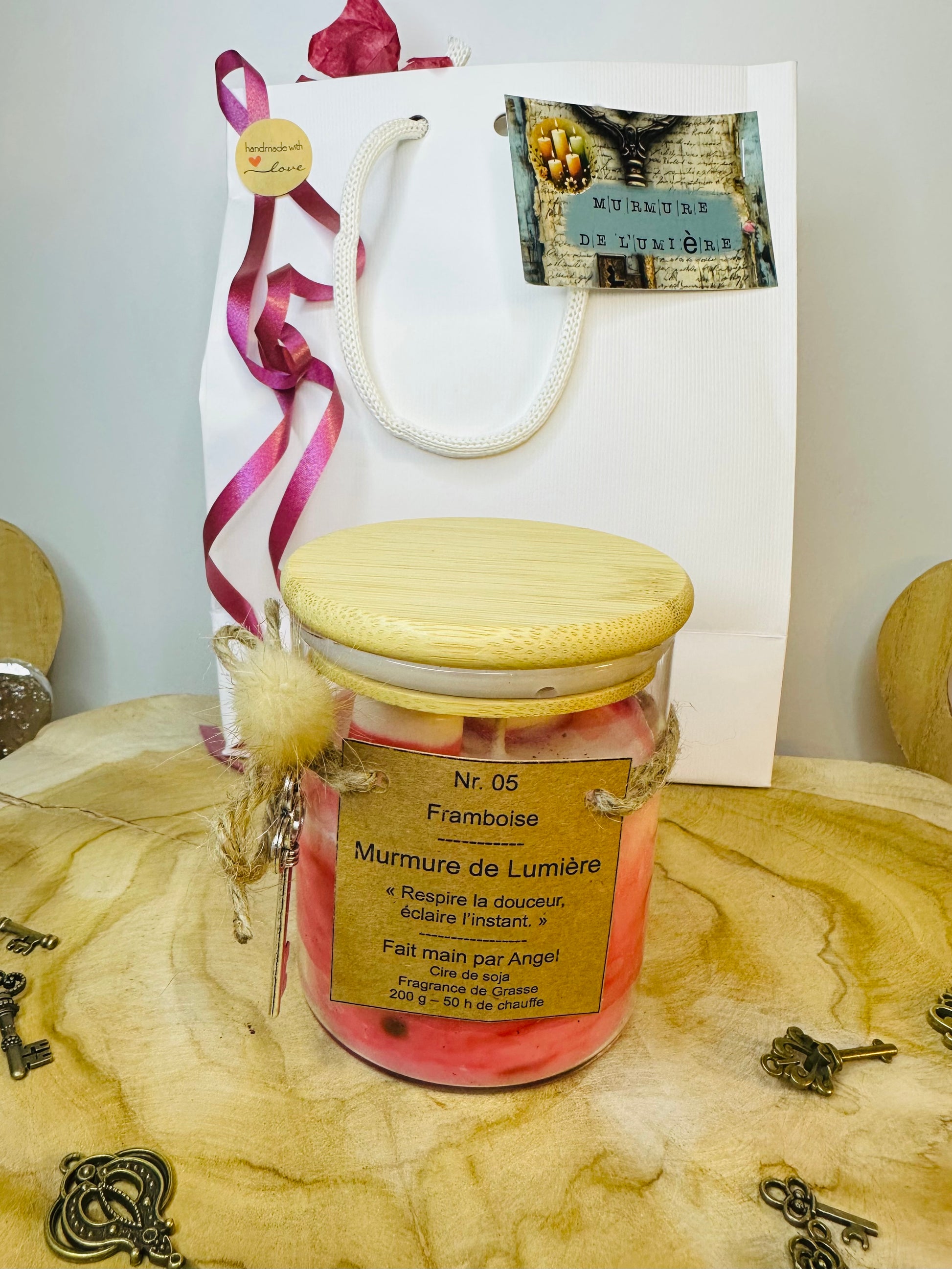 🕯️ Bougie parfumée Framboise – Bougie artisanale cire de soja